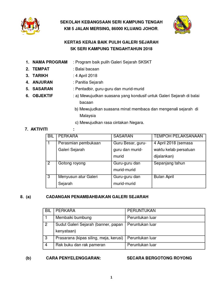 Pada awal penubuhnya sekolah ini dikenali dengan nama Sekolah Menengah Rendah Gemas. Ketua Lawatan Bertanggungjawab untuk memantau perjalanan program. Kertas Kerja Projek Galeri Sejarah Pdf Pdf.
